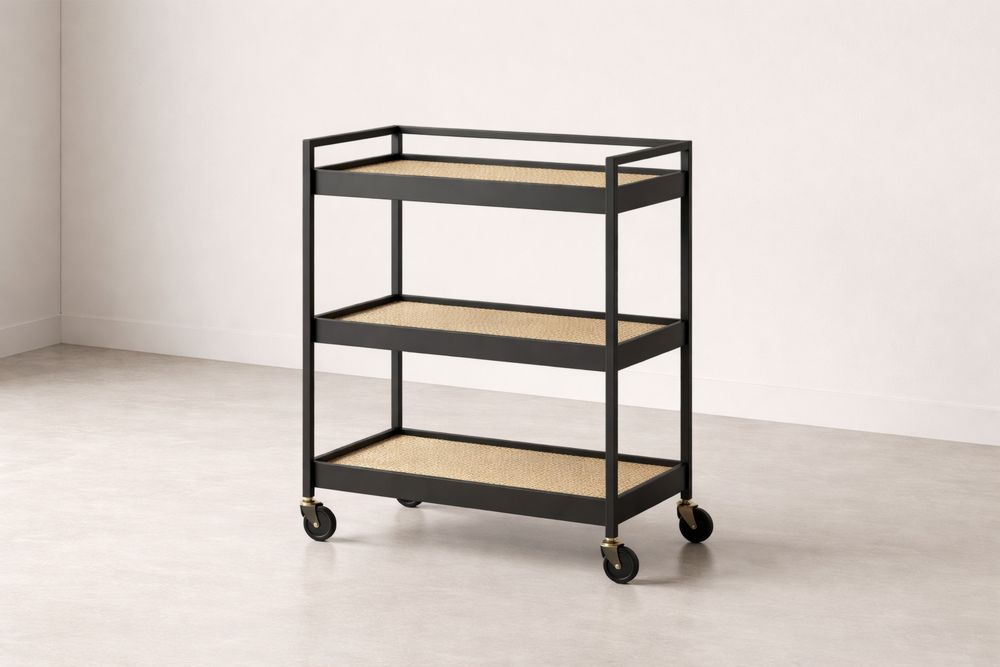 3-Tier Metal and Rattan Utility Cart with Wheels