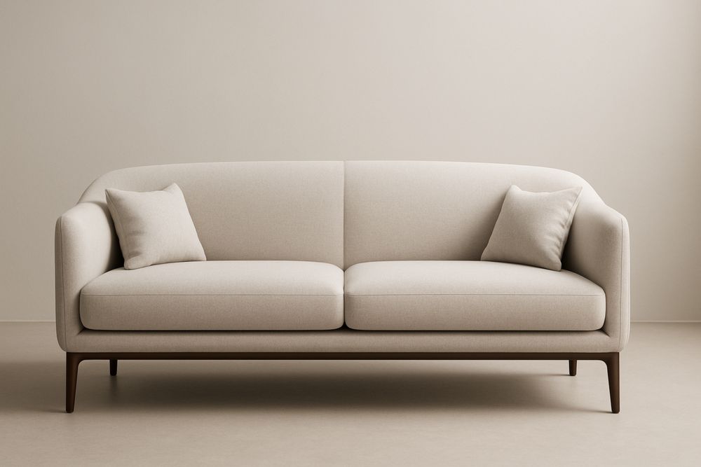Beige Fabric Sofa with Foam Cushions and Wooden Legs