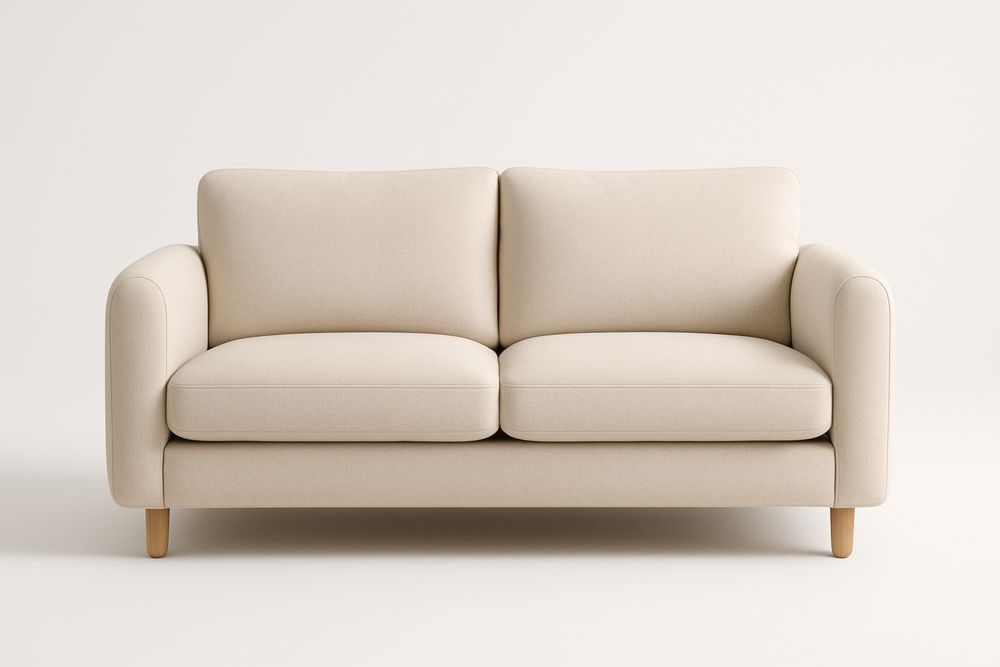 Beige Fabric Two-Seater Sofa with Foam Cushions and Solid Wood Legs
