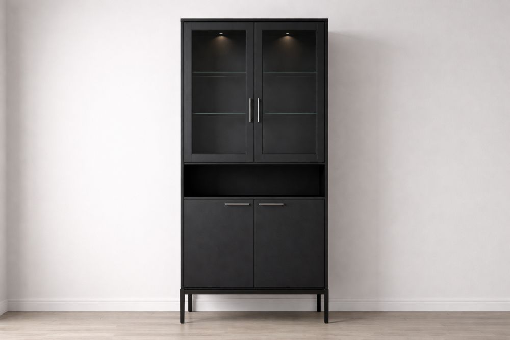 Black Tempered Glass and Engineered Wood Display Cabinet