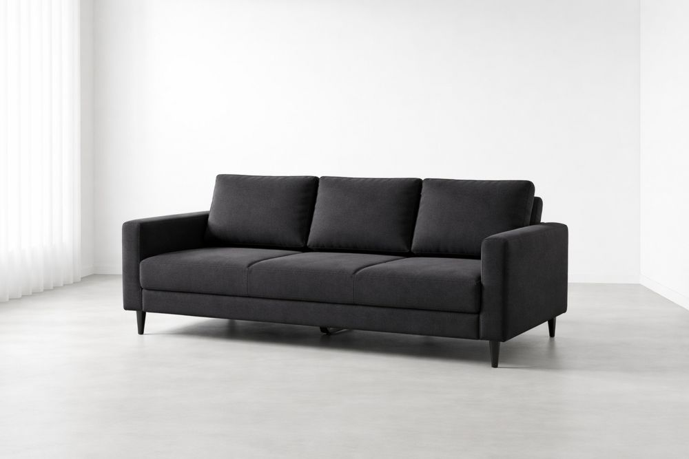 Dark Gray Fabric 3-Seater Sofa with Removable Cushions and Tapered Wood Legs
