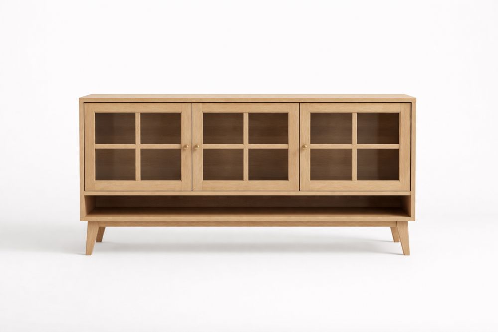 Oak Wood Sideboard with Tempered Glass Doors 150cm x 45cm x 80cm