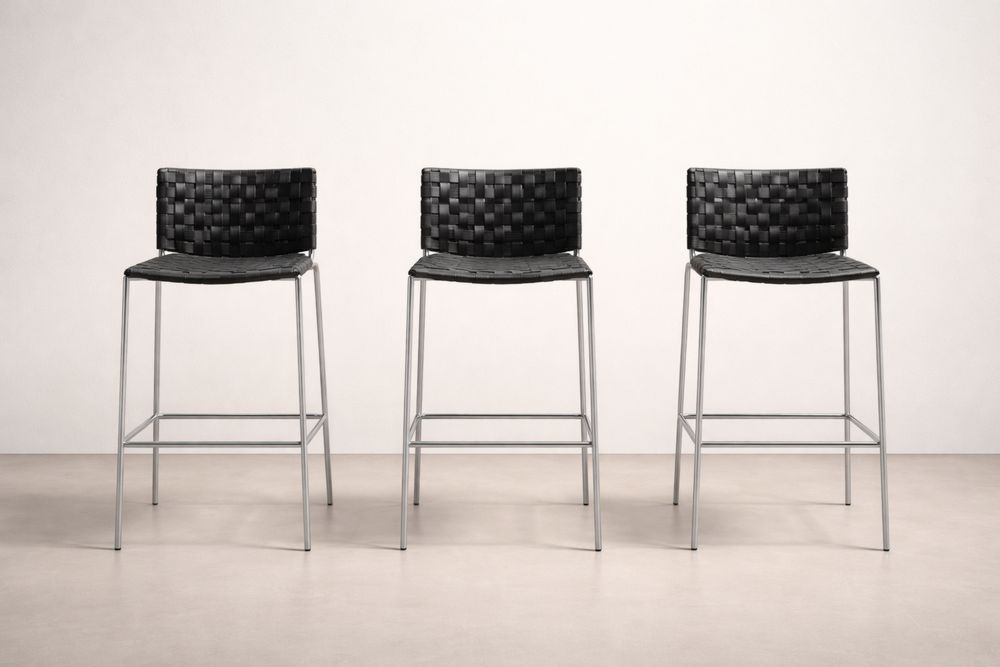 Set of 3 Black Woven Counter Stools with Metal Frame