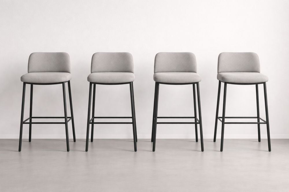 Set of 4 Grey Fabric Bar Stools with Metal Frame and Backrest