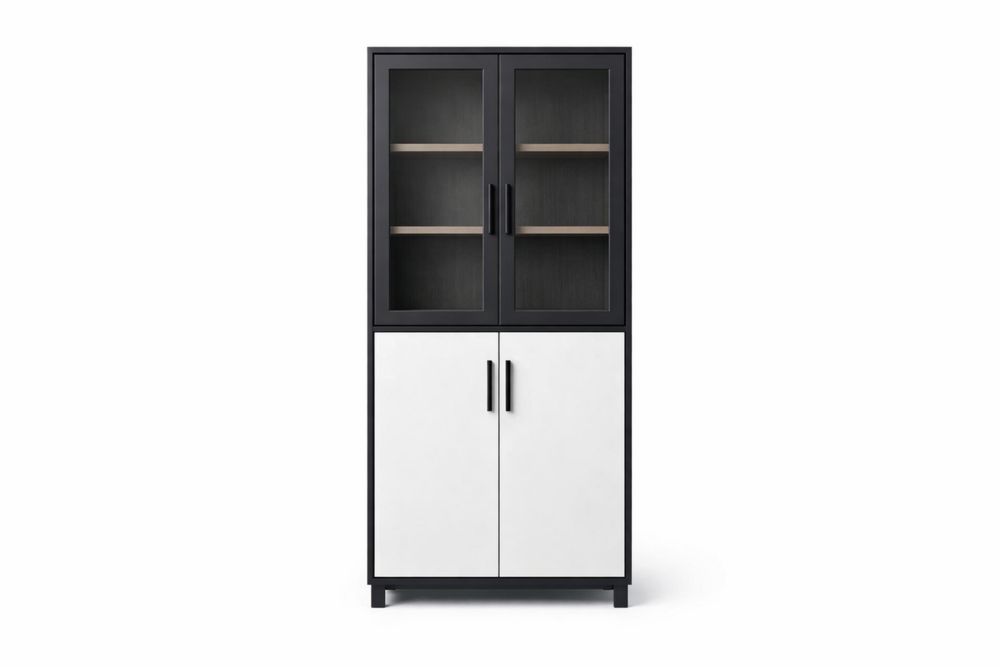 Tall Storage Cabinet with Glass Doors and Shelves MDF Black/White 180x80x40 cm