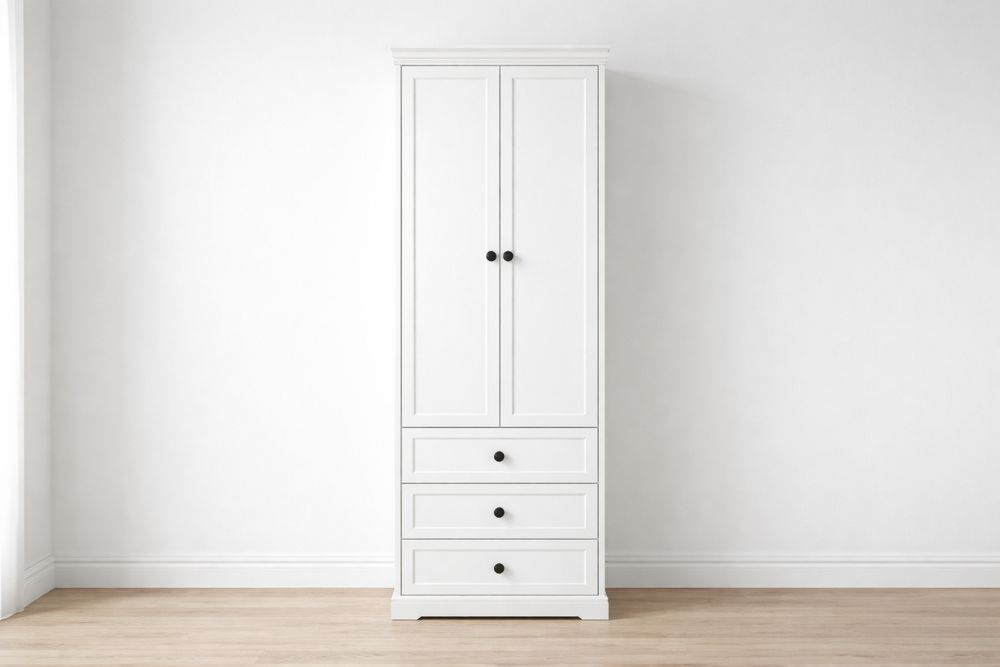 White MDF Tall Wardrobe with 3 Drawers