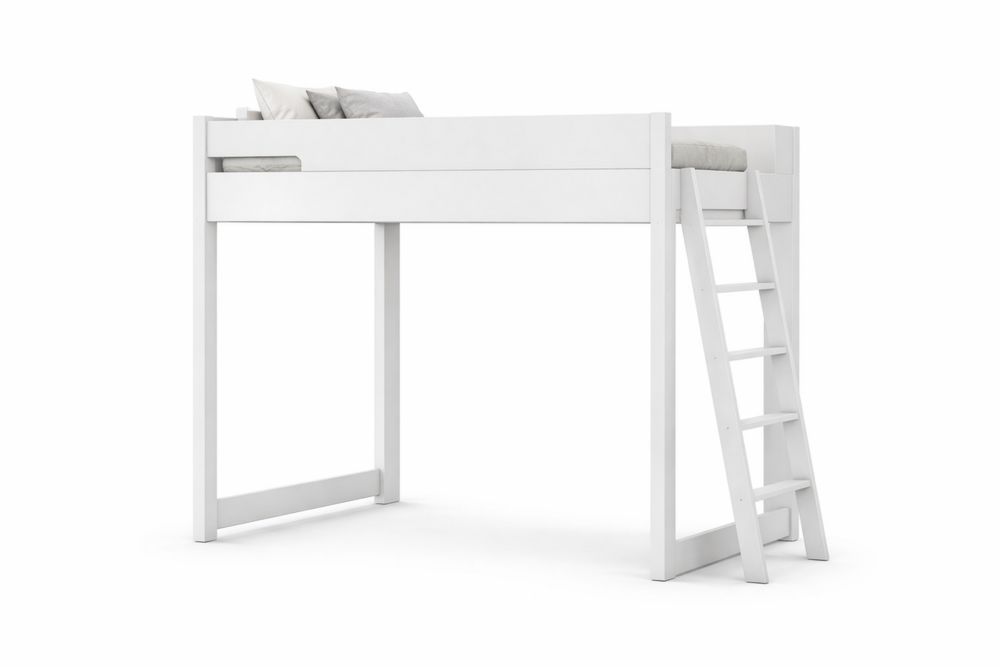 White Solid Pine Loft Bed with Ladder and Railings