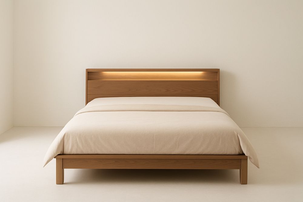 Wooden Bed Frame with Headboard LED Lighting, Oak, 210cm x 160cm x 110cm