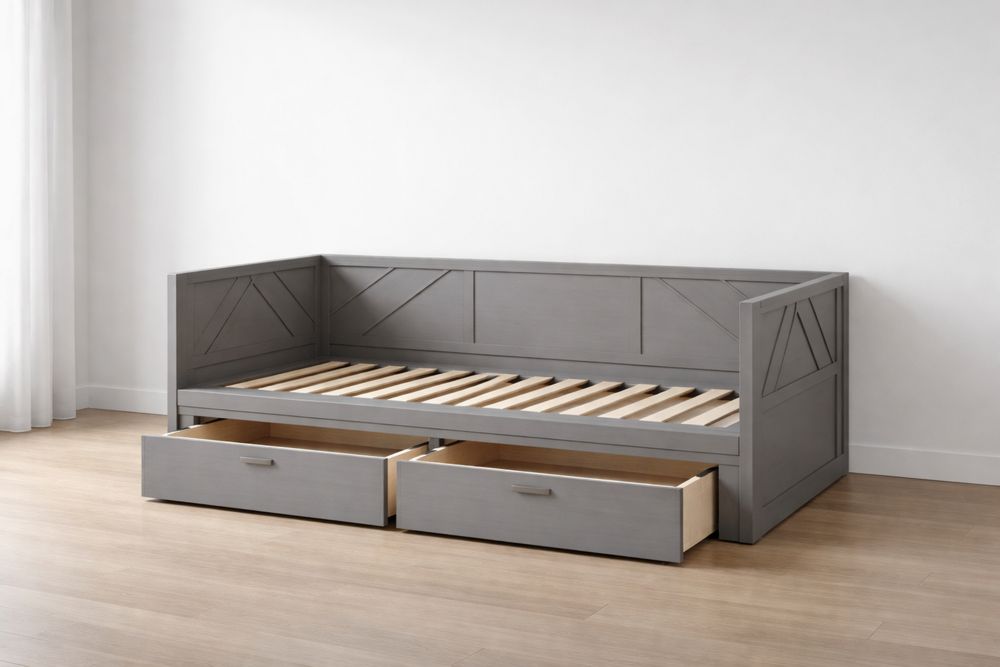 Wooden Daybed with Storage Drawers Gray 198cm x 98cm x 86cm